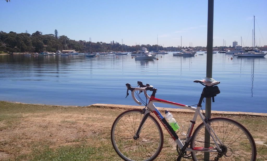 It was now time to meander back toward the city with the wind at my back. I always enjoy the ride back from Freo via the southern shore of the Swan River. The suburban roads are quiet and once you hit the bike path along the Kwinana freeway with twenty knots pushing you along it is almost like a downhill run all the way back to The Causeway and "About Bike Hire", the home of my mount for the day. Just on 60k in the legs and time for some more grub, then attempt to catch a reasonable nap before the "all night show" at work. Those 60k certainly help to send me off to sleep and have become a regular part of my routine when here in the west.