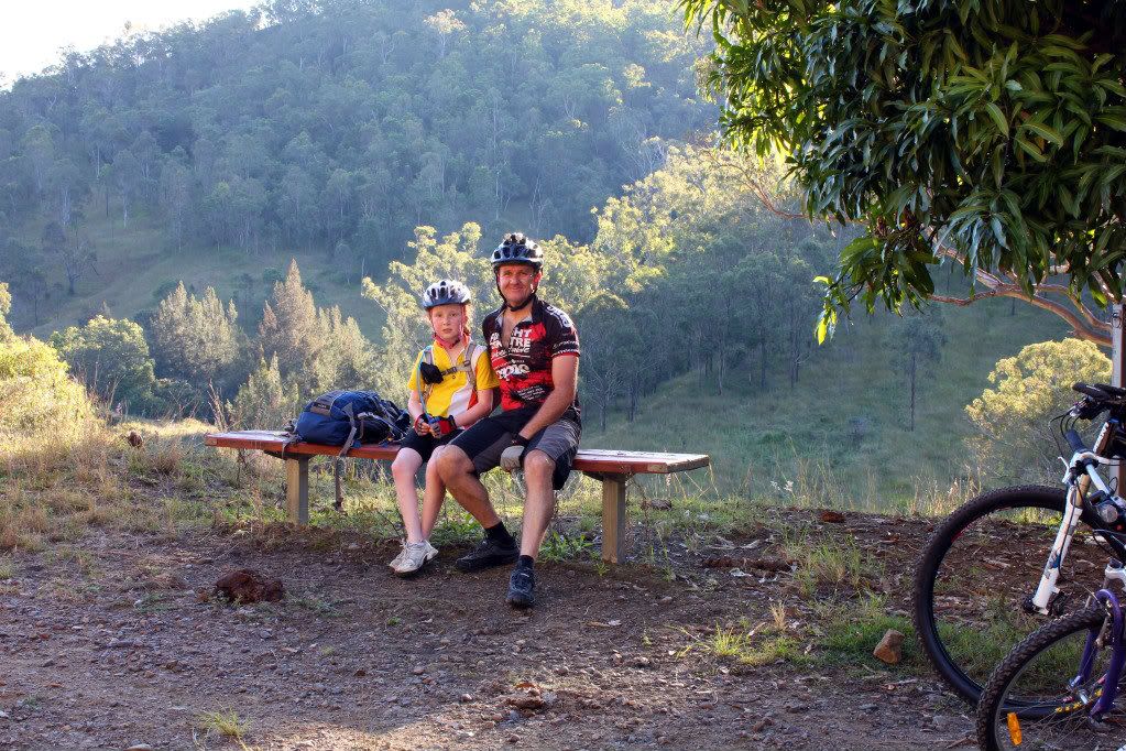 When the trail petered out at a road crossing we decided to jump on the tarmac and ride into Esk as it was getting late. 1km later we crossed the rail trail again! How we missed it I have no idea. A combination of fatigue and sun in the eyes maybe? I took a moment to relax on the trail side furniture and contemplate our navigational error!